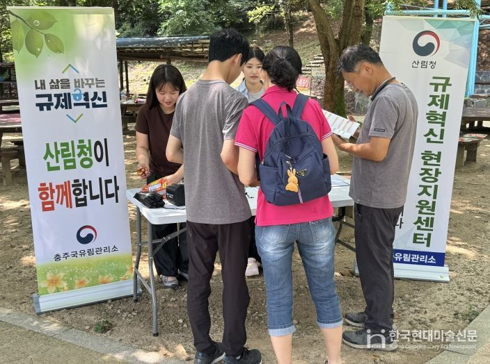 한국현대미술신문 신정은 기자 | 산림청 충주국유림관리소(소장 김종룡)는 7월 24일 음성군 봉학골산림욕장 일원에서 찾아가는 규제혁신 홍보 캠페인을 실시했다.