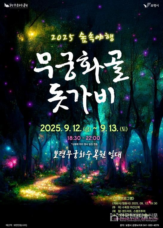 한국현대미술신문 신정은 기자 | 보령시는 2025 숲속야행 ‘무궁화골 돗가비’ 행사를 오는 9월 12일부터 13일까지 2일간 보령무궁화수목원 일원에서 개최한다고 밝혔다.