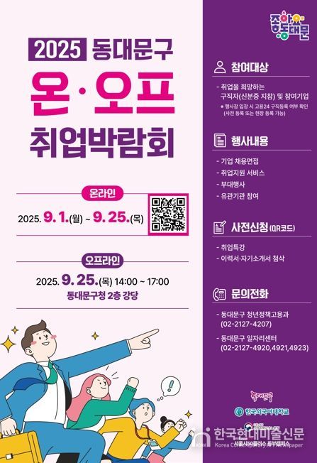 한국현대미술신문 배건 기자 | 서울 동대문구는 관내 일자리 창출 및 구인구직난 해소를 위해 ‘2025 동대문구 온·오프 취업박람회’를 개최한다.
