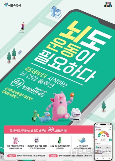 브레인핏45는 만 45세 이상 서울시민(서울 소재 직장인·자영업자 포함)이라면 누구나 이용할 수 있다. 올해 시범 운영 후 내년 3월부터 정식 서비스에 들어갈 예정이며, 오는 2030년까지 누적 참여 인원 25만 명을 목표로 하고 있다.