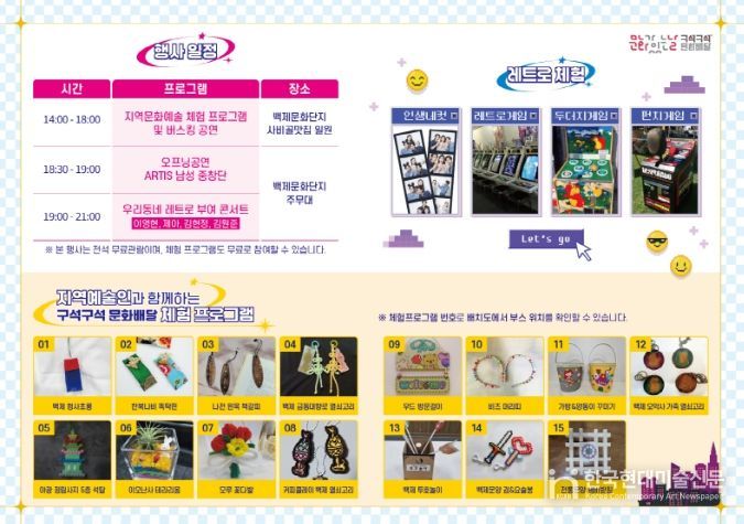 오후 2시부터 백제문화단지 사비골맛집 일원에서는 지역 예술인과 함께하는 다양한 문화예술 체험 부스와 버스킹 공연이 펼쳐져 축제 분위기를 한층 끌어올린다.