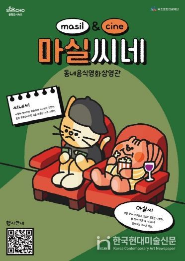 한국현대미술신문 원진 기자 | 속초문화관광재단은 지역 소상공인의 공간을 속초의 음식문화 향유 공간으로 활용하는 ‘동네 음식 영화상영관(이하 마실씨네)’을 운영하며 참여 가게와 관람객을 모집한다.