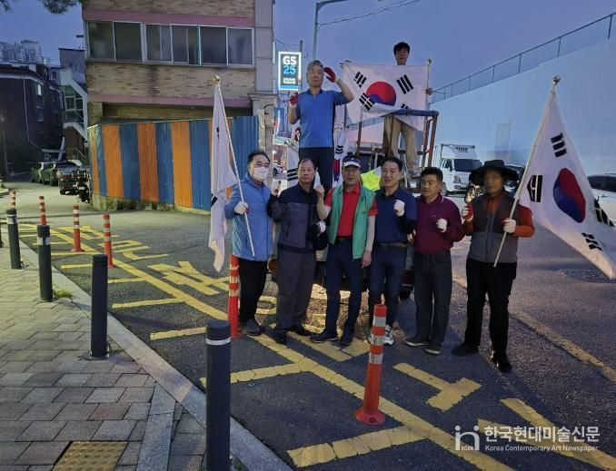 한국현대미술신문 배윤섭 기자 | 수원시 장안구 영화동 새마을지도자협의회는 지난 30일, 다가오는 건군 제77주년 국군의 날을 맞이하여 장안구 관내 도로변에 태극기를 게양했다.