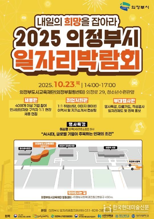 한국현대미술신문 배윤섭 기자 | 의정부시는 10월 23일 오후 2시 의정부도시교육재단 힐링센터(의정로 29, 청소년수련관 옆)에서 ‘2025 의정부시 일자리 박람회’를 개최한다.