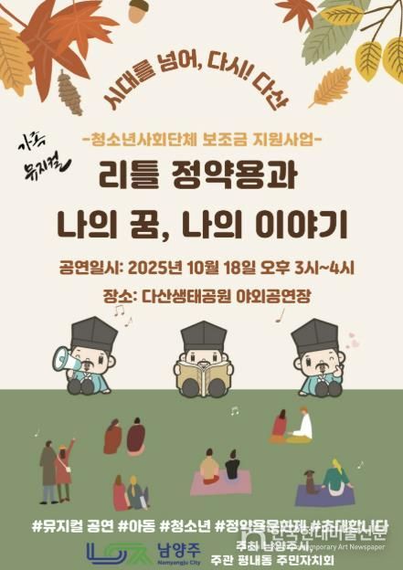 한국현대미술신문 배윤섭 기자 | 남양주시는 오는 10월 18일 조안면 다산생태공원에서 아동·청소년 대상 가족뮤지컬인 ‘리틀 정약용’을 선보인다.