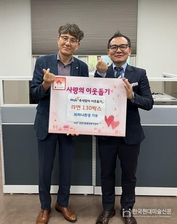 한국현대미술신문 배윤섭 기자 | 금촌2동이 추석 명절을 앞두고 ㈜하나환경으로부터 라면 130박스를 기탁 받았다.