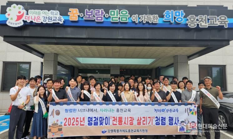 한국현대미술신문 원진 기자 | 홍천교육지원청은 10월 1일 홍천전통시장 일원에서 추석 명절을 앞두고 지역경제 활성화와 전통시장 이용 문화 확산을 위해 ‘전통시장 살리기 청렴 행사’를 실시했다.