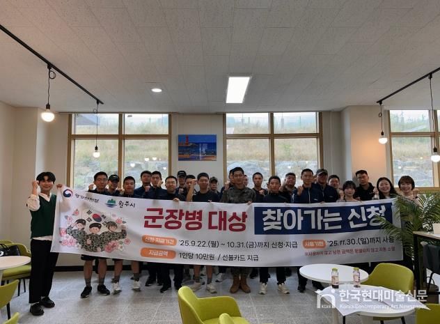 한국현대미술신문 원진 기자 | 원주시는 9월 30일부터 10월 1일 이틀간 군 장병 대상 “찾아가는 신청”을 접수받기 위해 항공사제71항공정비대대, 1군지사 2곳을 방문했다.