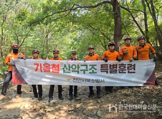 한국현대미술신문 신정은 기자 | 천안서북소방서는 가을철 등산객 증가로 인한 산악사고에 대비하기 위해 지난 9월 30일부터 10월 2일까지 3일간 천안시 서북구 성거산 일대에서 산악사고 대응을 위한 특별구조훈련을 실시했다고 전했다.