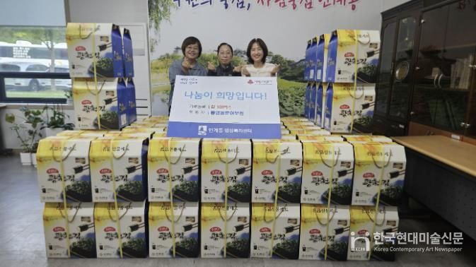 한국현대미술신문 배윤섭 기자 | 통영돌문어보쌈에서 다가오는 추석을 맞아 지난 10월 2일, 인계동 행정복지센터에 김 100박스를 전달했다.