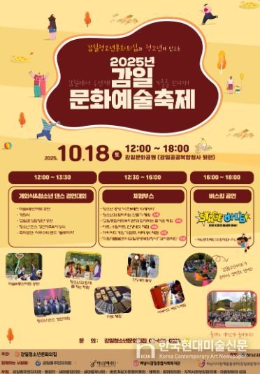 한국현대미술신문 배윤섭 기자 | 하남시 감일청소년문화의집은 오는 10월 18일 오후 12시부터 18시까지 감일문화공원(감일공공복합청사 뒷편)에서 '제2회 감일문화예술축제'를 개최한다.