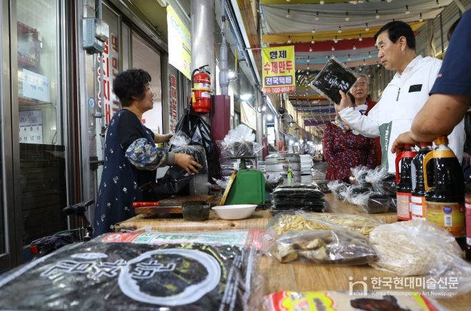 한국현대미술신문 신정은 기자 | 충주시는 2일 자유·무학시장 일원에서 ‘추석맞이 전통시장 장보기 행사’를 열고 명절을 앞두고 위축된 전통시장에 활력을 불어넣었다.