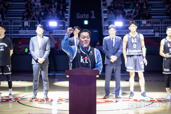 한국현대미술신문 배윤섭 기자 | 이재준 수원특례시장이 4일 수원KT소닉붐아레나에서 열린 ‘2025-2026 프로농구 KBL 홈 개막전’에서 개막선언을 했다.