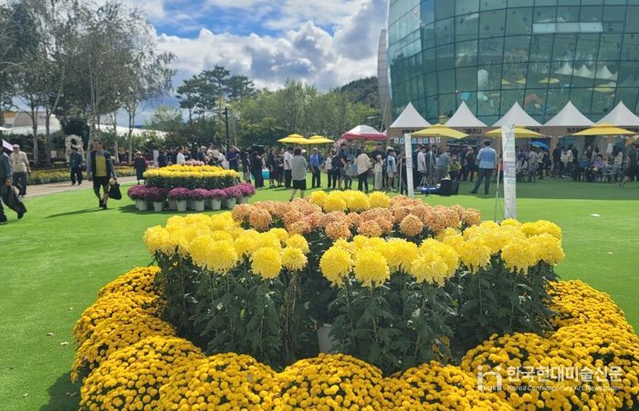 한국현대미술신문 신정은 기자 | 가을 연휴 기간 내린 비가 그친 뒤, 2025 제천국제한방천연물산업엑스포 광장이 화사한 꽃물결로 물들었다.