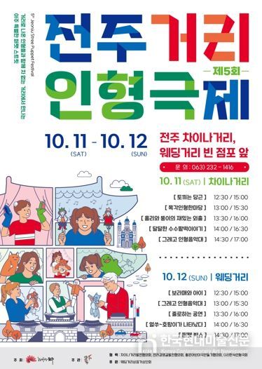 전주시가 주최하고 사단법인 꼭두가 주관하는 ‘제5회 전주거리인형극제’가 오는 11일과 12일 이틀간 전주 차이나거리와 웨딩거리에서 개최된다.