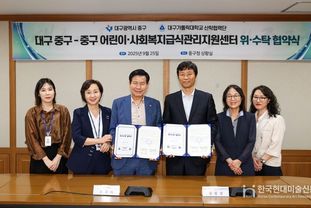한국현대미술신문 정소영 기자 | 대구 중구는 지난달 25일 대구가톨릭대학교 산학협력단과 ‘중구 어린이·사회복지 급식관리지원센터 위탁 운영’ 협약을 체결했다.