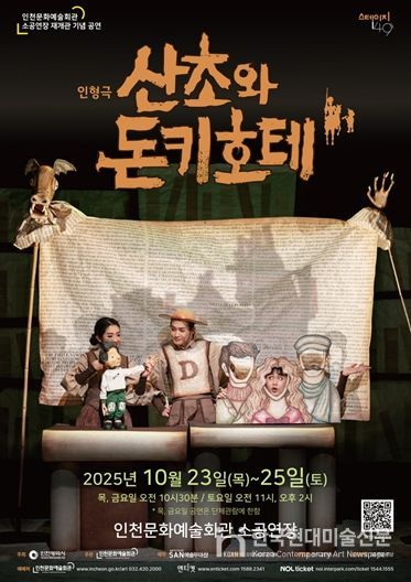 한국현대미술신문 박재남 기자 | 인천문화예술회관은 오는 10월 23일부터 25일까지 소공연장에서 예술무대산의 가족 인형극 〈산초와 돈키호테〉를 무대에 올린다. 이번 공연은 어린이 눈높이에 맞춘 명작을 소개하는 인천문화예술회관의 ‘어린이명작무대’의 일환으로 마련됐다.