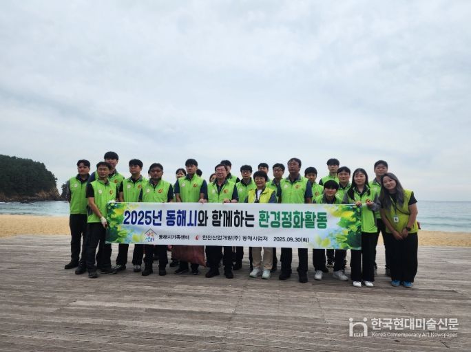 한국현대미술신문 원진 기자 | 동해시가족센터와 한전산업개발 동해사업처(처장 이영주)는 9월 30일 오전 동해시 한섬해변 일대에서 해양쓰레기 정화활동‘2025 비치코밍, 소중한 환경을 위해!’를 실시했다.