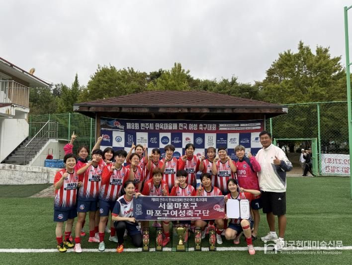 한국현대미술신문 배건 기자 | 마포구가 지원하는 ‘마포구 여성축구단’(단장 박종래)이 ‘제8회 전주시 한옥마을배 전국 여성 축구대회’에서 챔피언에 오르는 쾌거를 이뤘다.