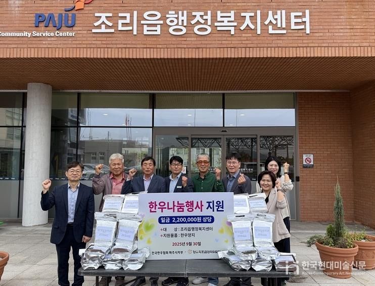한국현대미술신문 배윤섭 기자 | 파주시 조리읍은 지난 9월 30일 전국한우협회 파주시지부로부터 추석 명절을 맞아 220만 원 상당의 한우 양지 43kg을 기탁 받았다고 전했다.
