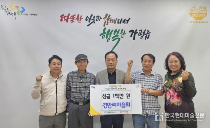 한국현대미술신문 배윤섭 기자 | 가평군 가평읍은 최근 경반리 마을회에서 취약계층 이웃을 돕기 위해 성금 100만 원을 기탁했다고 밝혔다.