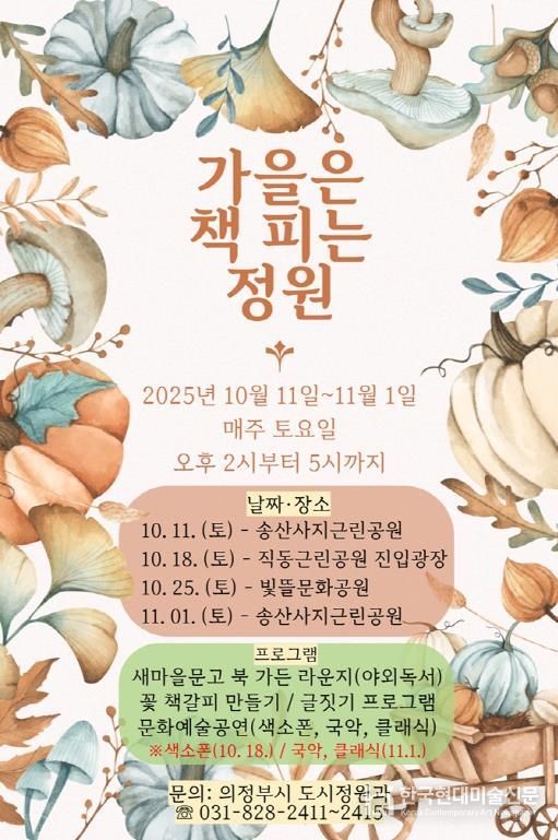 이와 함께 시는 10월 11일부터 11월 1일 매주 토요일 오후 2시부터 5시까지 총 4회에 걸쳐 송산사지 근린공원, 직동 진입광장, 빛뜰문화공원에서 ‘가을은 책피는 정원’ 행사를 순회 개최한다. 새마을 이동도서관과 협업해 도서 대여와 어린이 글짓기 교실을 열고, 지역 음악인들과 함께하는 클래식‧국악‧색소폰 공연, 꽃 책갈피 만들기 체험 프로그램도 진행할 예정이다.