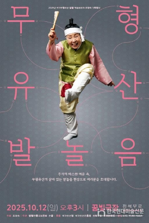 10월 12일 오후 3시 성북구 꿈빛극장(성북구 길음로7길 20 서울성북미디어문화마루 4층)에서 펼쳐지는 국가무형유산 발탈 예능보유자 조영숙 명인의 '무형유산 발놀음'이다. 성북구청 외에도 국가유산청과 국가유산진흥원, 성북문화원이 후원했다.