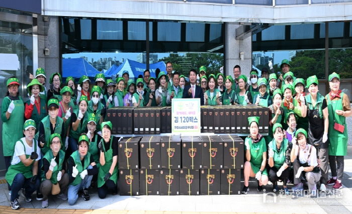 한국현대미술신문 배윤섭 기자 | 구리시 새마을부녀회는 지난 2일 구리시청 민원 광장에서 소외되고 어려운 이웃들이 따뜻한 명절을 보낼 수 있도록 ‘함께해요. 새마을, 행복한 추석 김 전달 행사’를 개최했다고 밝혔다.