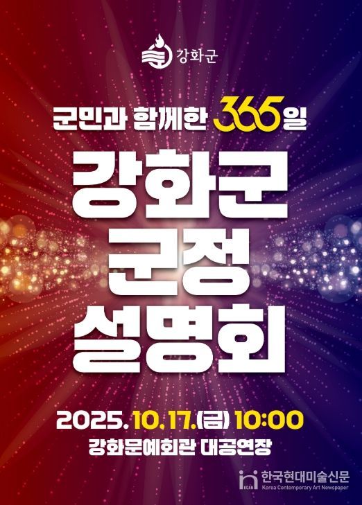 한국현대미술신문 박재남 기자 | 강화군은 오는 10월 17일 오전 10시 강화문예회관에서 “군민과 함께한 365일, 강화군 군정 설명회”를 개최한다.