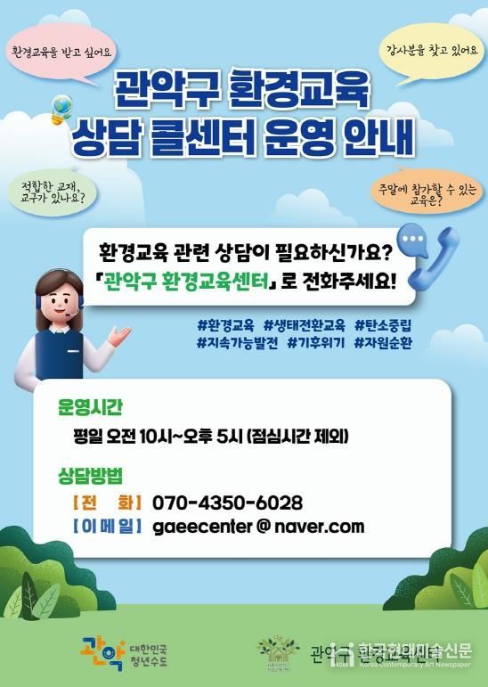 한편, 구는 주민과 기관‧기업의 환경교육 참여를 지원하기 위해 ‘관악구 환경교육 상담 콜센터’를 시범 운영하고 있다.