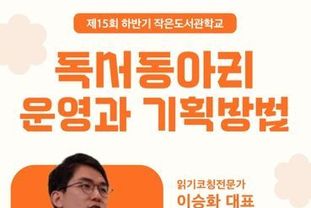 교육에는 읽기코칭전문가 이승화 대표가 나서 ‘독서동아리 기획과 운영 방법’을 주제로 독서동아리 기본, 질문법 및 진행법 등을 안내할 예정이다.