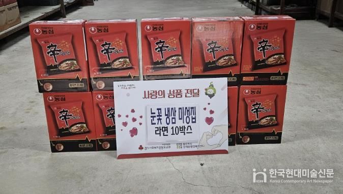 한국현대미술신문 배윤섭 기자 | 동두천시 상패동 행정복지센터는 눈꽃 냉삼 미성집이 관내 저소득 가구를 위해 라면 10박스를 기탁했다고 밝혔다.