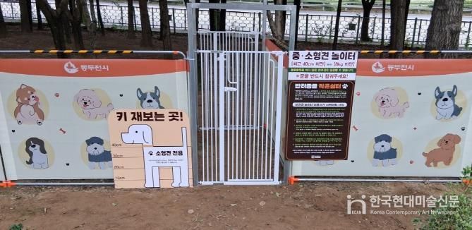 한국현대미술신문 배윤섭 기자 | 동두천시는 반려견과 시민이 함께 어울릴 수 있는 반려동물 문화공간을 조성하기 위해 강변로 156(강변근린공원 내)에 반려견 간이놀이터(이동식 울타리)를 설치하고 시범운영에 들어갔다고 밝혔다.