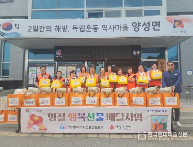 한국현대미술신문 배윤섭 기자 | 안성시 양성면지역사회보장협의체는 2025년 추석명절을 맞이하여 지난 2일 목요일, 관내 저소득층 및 복지사각지대 35가구에게 송편과 생필품으로 구성된 추석명절 행복선물꾸러미를 전달했다.