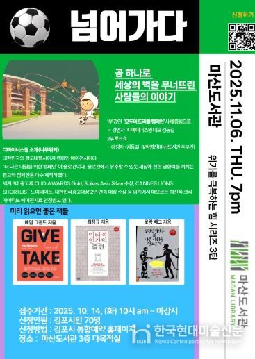 한국현대미술신문 배윤섭 기자 | 마산도서관은 오는 11월 6일 19시, 본관 3층 다목적실에서 ‘공 하나로 세상의 벽을 무너뜨린 사람들의 이야기’ 프로그램을 운영한다고 밝혔다.