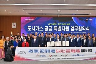 이날 협약식에서 김태흠 지사는 “이번 지역들은 시 지역임에도 경제성 문제로 오랜 기간 지체돼 안타까움이 컸다”며 “그동안 등유와 LPG로 난방과 취사를 하며 높은 비용 부담을 견뎌오셨을 텐데, 2027년까지 공사를 마쳐 안전하고 편리하게 도시가스를 사용하도록 하겠다”고 말했다.