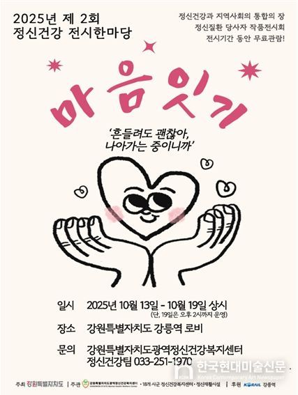 한국현대미술신문 원진 기자 | 강원특별자치도(도지사 김진태)와 강원특별자치도광역정신건강복지센터는 10월 13일 오전 11시, 강릉역 1층 로비에서 '제2회 정신건강 전시한마당' 개막식을 열고 전시의 시작을 알렸다.