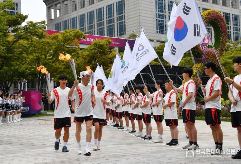 이어서 차세대 체육인을 대표하는 부산의 대표 꿈나무 이건호와 황설후 두 선수가 성화 봉송 부주자로 참여해, 세대를 잇는 희망과 도전의 메시지를 전달한다.