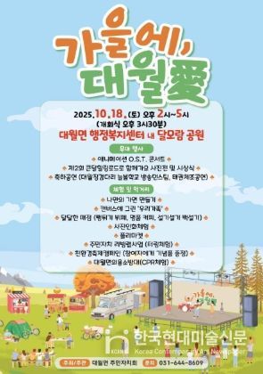 한국현대미술신문 배윤섭 기자 | 이천시 대월면 주민자치회는 오는 10월 18일 오후 2시부터 5시까지 대월면 행정복지센터 내 달모람공원에서 주민과 가족이 함께하는 문화축제 ‘가을에, 대월애(愛)’ 행사를 개최한다.