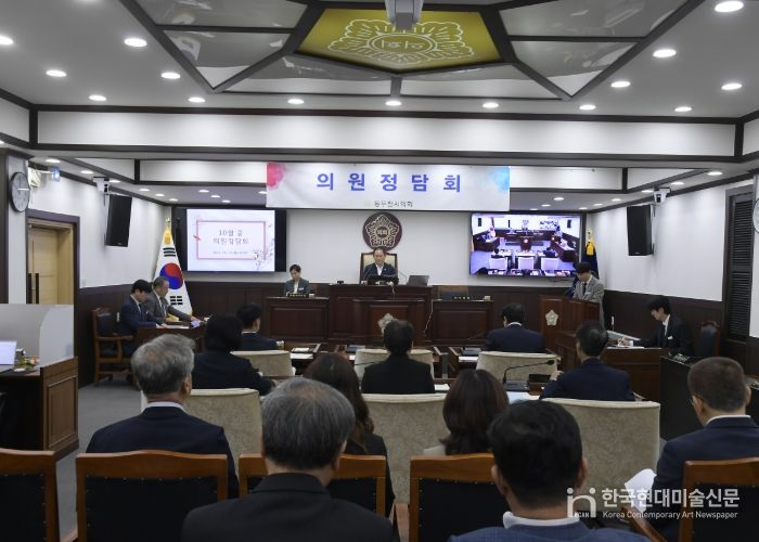 한국현대미술신문 배윤섭 기자 | 동두천시의회는 10월 13일 2층 본회의장에서 ‘10월 중 동두천시의회 의원정담회’를 개최했다. 정담회에서는 시의 주요 현안과 정책 추진 방향을 공유하고 조례안과 2026년도 출자출연금 사전의결안, 사업 보고 등 다양한 안건에 대해 심도있는 논의가 이뤄졌다.