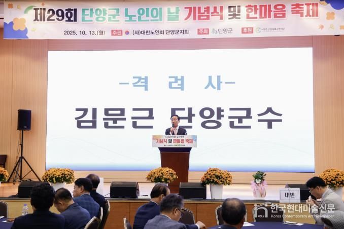 한국현대미술신문 신정은 기자 | 충북 단양군은 지난 13일 소노문 단양 그랜드볼룸홀에서 열린 ‘제29회 노인의 날 기념식 및 한마음 축제’를 성황리에 개최했다고 밝혔다.