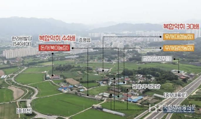 시는 이번 공모 선정으로 국・도비 80억원을 포함해, 총사업비 123억원을 확보했다. 2029년까지 금대2리 일원 돼지 축사 1개소, 소 축사 2개소 및 폐축사 등 총 2만3천368㎡를 철거하고 복합문화체육시설, 마을공원 등 주민 편의시설을 조성해 그동안 고통받은 주민의 삶의 질과 복지 향상을 도모할 계획이다.