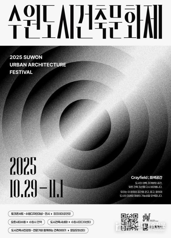 한국현대미술신문 배윤섭 기자 | 수원특례시는 10월 29일부터 11월 1일까지 정조테마공연장, 수원시미디어센터, 팔달문화센터 등에서 ‘2025 수원도시건축문화제’를 연다.