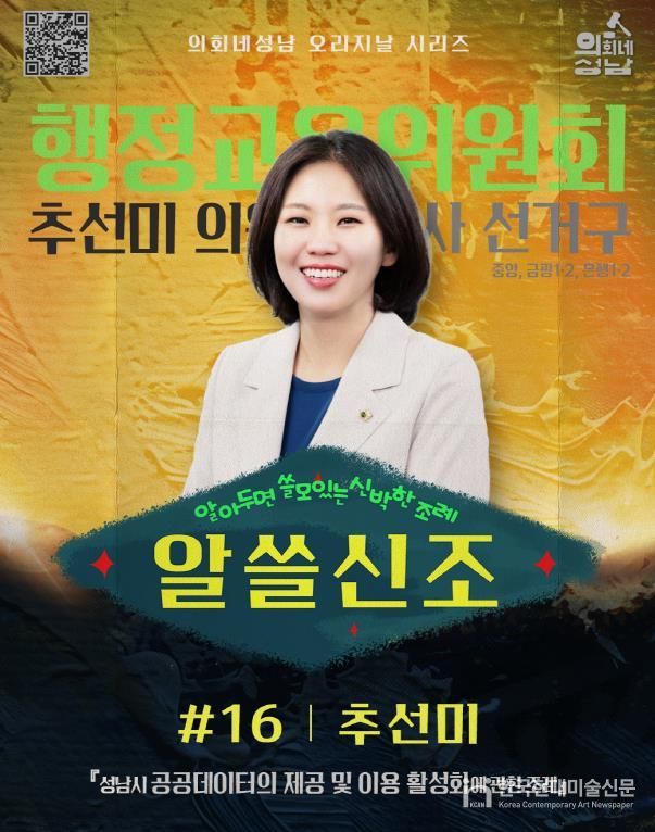 한국현대미술신문 배윤섭 기자 | 성남시의회는 ‘알쓸신조-추선미 의원 편’영상을 10월15일 17시 시의회 공식 SNS에 게시한다.