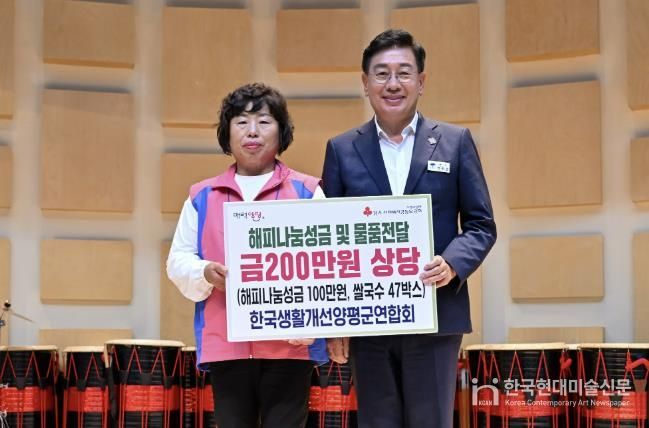 한국현대미술신문 배윤섭 기자 | 한국생활개선양평군연합회는 지난 9월 30일부터 10월 1일까지 강릉 한국여성수련원에서 열린 ‘2025년 생활개선양평군연합회 한마음대회’에서 쌀국수 47박스와 현금 100만 원, 총 200만 원 상당의 해피나눔성금을 기탁했다고 밝혔다.