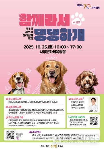한국현대미술신문 배윤섭 기자 | 김포시는 반려동물과 시민이 함께하는 문화의 장인 제1회 김포시 반려문화축제 '함께라서 댕댕하개 in 김포'가 오는 10월 25일 사우문화체육광장(사우동)에서 개최된다고 밝혔다.