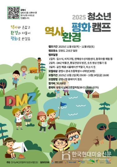 한국현대미술신문 배윤섭 기자 | 광명시는 전국남북교류협력지방정부협의회가 주최·주관하는 ‘2025 청소년 역사·평화·환경캠프’에 참가할 청소년을 모집한다.