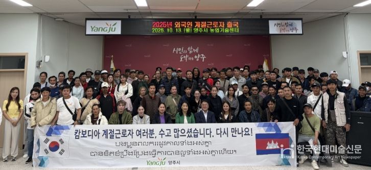 한국현대미술신문 배윤섭 기자 | 양주시가 지난 13일, 라오스 85명, 캄보디아 22명, 베트남 2명 등 총 109명의 외국인 계절근로자가 본국으로 안전하게 귀국했다고 전했다.