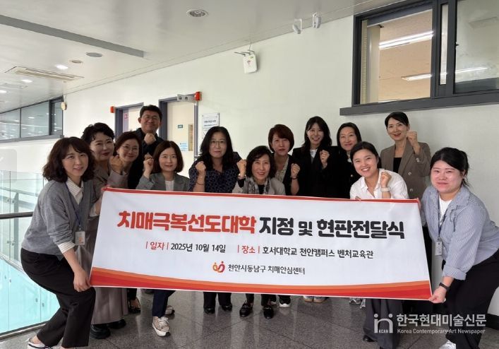 한국현대미술신문 신정은 기자 | 천안시는 14일 치매극복선도대학으로 신규 지정된 호서대학교 글로벌융합대학에 현판을 전달했다고 밝혔다.