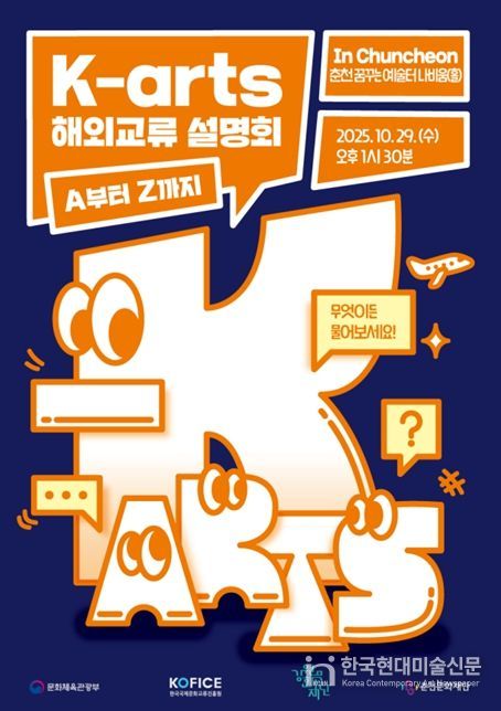 한국현대미술신문 원진 기자 | 강원문화재단은 오는 10월 29일 오후 1시 30분, 춘천 꿈꾸는 예술터 3층 나비움에서 개최되는 ‘K-arts 해외교류 설명회, A부터 Z까지’의 사전접수를 진행 중이다.